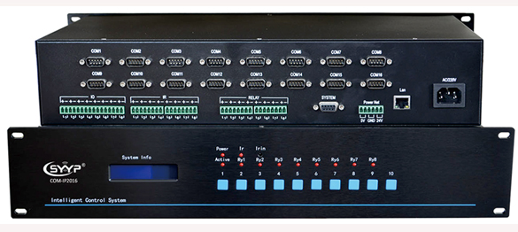 設計級別:高端場合。完全按照智能會議中控主機要求設計,非電教中控主機改裝,具有大量豐富的控制口,向國際知名品牌看齊,不集成信號切換系統(小矩陣),增強控制接口,以降低整個系統崩潰的風險; ■控制通訊:以太網(TCP/IP),10/100M自適應,TCP SERVER方式,也可定制為UDP方式。 ■處理器:嵌入式雙處理器。 采用2顆嵌入式高速中央處理器(CPU)并行運算,有別于傳統的中控系統,可快速處理各種復雜的控制指令,提高響應用戶的速度; ■紅外口:8路。路獨立可編程的紅外發射接口,支持控制多臺相同或不同的紅外設備,支持控制DVD、電視機、空調、投影機等所有紅外遙控設備; ■紅外學習器:內置,支持超長碼識別。主機內置紅外學習器,自動識別紅外代碼類型,能輕松學習超長碼的空調遙控器,對音視頻設備這些32位普通遙控器,更不在話下。可把紅外數據保存到電腦成為紅外庫文件,供后續工程或后續維護升級使用,提高工作效率; ■指令存儲器:FLASH,大容量FLASH存儲器,可保存高達2048條控制指令,滿足任何場合的控制存儲要求,支持擴展; ■繼電器:8路弱電繼電器接口,用于窗簾、電動幕布等控制; ■RS232串口: 16路,可編程, RS-232 串口,和RS-485互不關聯,可同時使用; ■RS485/422串口: 8 路,可編程,RS-485 串口,和RS-232互不關聯,可同時使用;(即最多有24個串口) ■IO口:支持外部高電平觸發動作或輸出高電平; ■尺寸:480mm(長)x 250mm(深) x 85mm(高)或 480mm(長)x 180mm(深) x 80mm(高); ■重量:3.8kg; ■安裝:標準機柜,2U高度; ■平均故障間隔時間MTBF:38000小時。