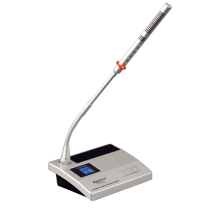 ◆ 符合IEC60194、GBT15381-94國際標準,高強度鋅合金壓鑄,外觀大氣沉穩。 ◆ 集發言、投票、按鍵簽到、表決功能于一體的會議發言單元。 ◆ 帶雙色指示燈環(紅色/白色),發言為紅色 ◆ 咪頭外殼根據聲學原理設計,配合超指向性電容咪實現高度的人聲還原,帶聲頻啟動功能,發言時話筒自動打開。 ◆ 系統單元熱插拔功能,超強的抗手機干擾能力。 ◆ 具有消咳鍵,當發言人員咳嗽時,可暫時關閉麥克風,防止咳嗽聲傳到會場。 ◆ 具有話筒開關鍵,6個投票表決鍵,服務呼叫功能幫助鍵,中文簡體、繁體、英文菜單切換按鍵。 ◆ 高精度超亮度128*64LCD液晶屏,清晰顯示單元工作狀態。 ◆ 本會議單元的ID號碼、申請發言人數、表決結果、簽到人數以及各種操作信息等內容。 ◆ 單元由主機供電,輸入電壓為24V,屬于安全電壓。 ◆ 主席單元具有優先鍵、批準鍵。支持連接電腦將代表話筒設置VIP話筒,VIP不受主席控制,連接位置不受限制。 "手拉手"或 "T型"連接模式。