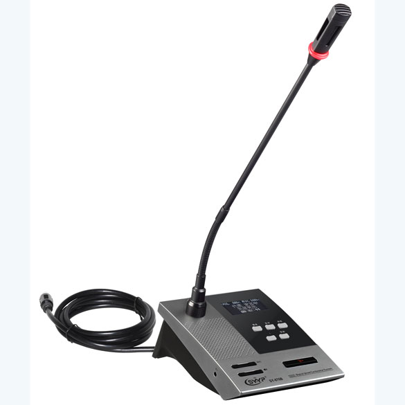 ?嵌入式設計 ?主席單元有優先發言權,可隨時關閉其他列席單元。 ?主席單元擁有批準代表發言按鍵,象顯身份權利。 ?鋁合金面板具有紅色發言指示燈?智能數字化設計控制電路,功耗低 ?金鋁合金設計,美觀、時尚、經久耐用 ?高保真單指向性電容咪芯,聲音還原、清晰度高、噪音小; ?優良抗手機干擾能力。 ? 315度全向彎折不銹鋼軟管 ? 單元自帶2.1米單出8p連線,配備T3N連接線,安裝簡便,提高安裝的效率 ?會議單元支持熱插拔功能,自帶2.1米8P連接線;手拉手連接模式,安裝簡便,操作靈活類型: 電容式 ?類型:電容式 ?指向性:單一指向性 ?頻率響應:40Hz-16KHz ?靈敏度(:-43±2dB@1KHz ?輸入電壓:DC 9V(主機供電) ?最小輸入阻抗 :1KΩ ?信噪比:90dB(A) ?輸出插座:2.0M 8P端子座 ?輸入導線:2.0m 8P屏蔽線 ?附件:防風海綿、2.0m 8PT3M屏蔽線