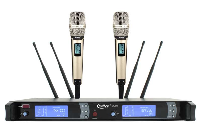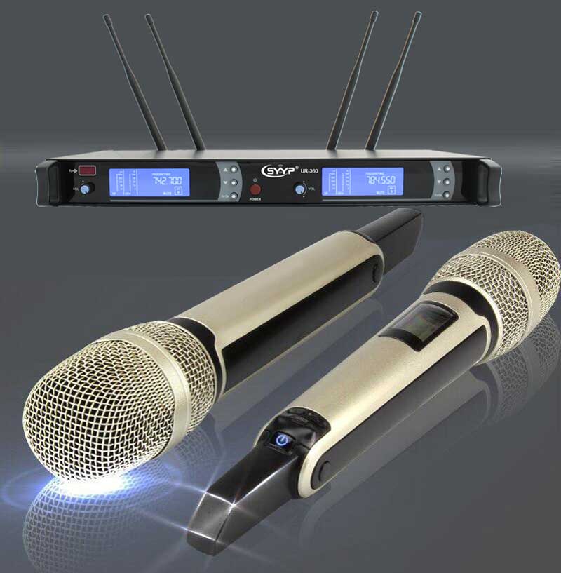真分集一拖二,外觀新穎,高保真音質,四天線,金屬管香檳色手持,直線接收距離120-150米左右。
