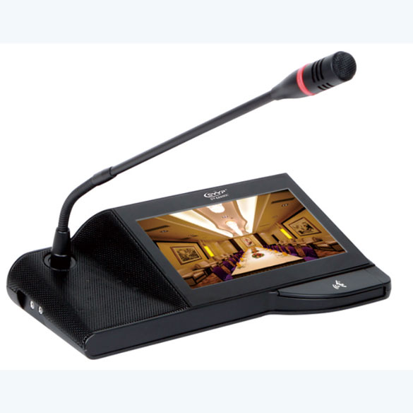 ■要發(fā)言時(shí),按一下MIC ON/OFF鍵,此時(shí)燈環(huán)燈亮起;發(fā)言完畢, 再按一下MIC ON/OFF鍵,此時(shí)燈環(huán)燈滅。 ■所有發(fā)言設(shè)備都可通過系統(tǒng)設(shè)置菜單:調(diào)節(jié)本機(jī)的音量、LCD亮度。 ■麥克風(fēng)具有發(fā)言開關(guān)可控制發(fā)言狀態(tài)。使用FPGA作為核心CPU。 ■具有強(qiáng)制切斷列席麥克風(fēng)發(fā)言的優(yōu)先功能,具有攝像機(jī)自動(dòng)跟蹤功能。 ■臺(tái)面可移動(dòng)式、可拔插咪管。 限制發(fā)言數(shù)量可選。 ■單元由系統(tǒng)主機(jī)供電。輸入電壓為DC24V,屬于安全范圍。 ■麥克風(fēng)網(wǎng)頭具有環(huán)形紅色光環(huán),可顯示麥克風(fēng)發(fā)言狀態(tài)。 ■單元具有8P-DIN插座用于系統(tǒng)連接。 ■內(nèi)置高保真揚(yáng)聲器及外接耳機(jī)插孔。 ■可繞式電容麥克風(fēng),并配可更換式防風(fēng)罩。 ■采用全新數(shù)控化設(shè)計(jì)。 ■可以發(fā)言與聆聽。 ■話筒桿具有加長型可供選擇。 ■麥克風(fēng)具有發(fā)言開可控制發(fā)言狀態(tài)。 ■頻率響應(yīng): 80Hz~16kHz ■ 靈敏度: -44dB±2dB ■ 參考講話距離: 15cm~50cm ■咪桿長度: 390mm ■ 顯示屏:7” TFT 16:9 ■ 分辨率:800*480 ■色 彩:262K