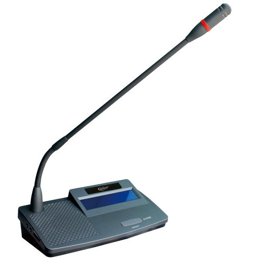 ◆ 具麥克風發言按鍵及發言指示燈,可控制及顯示麥克風開啟/關閉; ◆ 單指向性、具防氣爆音、內建防風防護罩之功能; ◆ 具有主席優先控制按鍵,可啟動系統提示音提醒所有出席人員注意,可設定永久終止或暫停終止所有發言代表麥克風單元動作; ◆ 具有可插拔式鵝頸可繞性麥克風桿,并具有發言指示燈環; ◆ 單元由系統主機供電。輸入電壓為DC24V,屬于安全范圍; ◆ 具兩組3.5mm立體聲輸出插座,可作錄音及連接MIC用; ◆ 單元具有8芯插座用子系統“T”型連接;內置高保真揚聲器及外接耳機插孔; ◆ 可繞式電容麥克風,并配可更換式防風罩; ◆ 話筒桿具有加長型可供選擇;麥克風具有雙色燈環; ◆ 系統中主席單元不受限制,并可置回路中任何位置; ◆ 具有一組輸出插孔和一組無線MIC輸入插孔(可選項); ◆ 具有強制切斷代表單元麥克風發言的優先功能和主席優先的提示音; ◆ 具有主席專有模式:主席按PRIO鍵關閉發言狀態的代表單體后,所有代表單元不能在開啟,直至該主席單元結束發言關閉麥克風; ◆ 內建高品質喇叭(當麥克風開啟時,喇叭自動靜音); ◆ 內含會議麥克風單元連接線; ◆ 符合國際會議設備電器認證標準(IEC60914)及國際安規標準UL或CE認證; ◆ 頻率響應:80Hz~16kHz;靈敏度:-44dB±2dB; ◆ 咪桿長度:390mm;外觀尺寸:207mmX117mmX60mm;參考講話距離:15cm~50cm;凈重:1kg