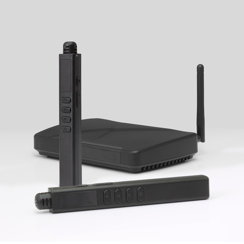 功能參數(shù): ■工作頻段:2.4G全球通用的免許可證 ISM 綠色頻段; ■傳輸距離遠(yuǎn):可在大于30 米開闊地帶范圍內(nèi)穩(wěn)定傳輸音頻數(shù)據(jù); ■同一話筒可在任意教室使用,且互不干擾;真正做到一師一麥,干凈衛(wèi)生環(huán)保; ■支持內(nèi)置麥克風(fēng)及外置麥克風(fēng)。使用內(nèi)置麥克風(fēng),可手持使用,也可插在上衣衣領(lǐng)、口袋,或用掛繩掛于胸前使用;在同時使用激光教鞭、遙控電腦PPT等功能時建議使用外置3.5mm插頭的頭戴麥克風(fēng)或領(lǐng)夾式麥克風(fēng)插入外接麥克風(fēng)插孔,可獲得最佳的拾音效果; ■支持激光筆教鞭; ■支持PPT翻頁和一鍵黑屏/恢復(fù)功能,可配合投影儀或者電腦展示講解使用。PPT 翻頁模塊支持熱插拔,無需裝驅(qū)動軟件,支持不開主機(jī)使用PPT 翻頁功能; ■支持3.5mm音頻輸入和麥克風(fēng)輸入; ■2.4G與紅外兩種對頻方式:開機(jī)自動搜索干擾少的信道對頻,3秒 內(nèi)完成自動配對,保證產(chǎn)品不串頻、抗干擾性強(qiáng)以及傳輸?shù)姆€(wěn)定性; 紅外對頻,確保同一空間設(shè)備準(zhǔn)確對頻; ■采用32kHz 采樣率,保證人聲音質(zhì)質(zhì)量,傳輸前后經(jīng)過獨(dú)有技術(shù) 處理,確保接收到的信號保持高保真效果; ■采用內(nèi)置駐極體拾音器,設(shè)計(jì)有拾音器腔體,能有效抑制嘯叫, 提高拾音距離,腔體內(nèi)置聲學(xué)海綿墊,可改善爆破音; ■支持一鍵靜音功能; ■支持音量調(diào)節(jié):可調(diào)節(jié)麥克風(fēng)音量的大小,并具有關(guān)機(jī)記憶功能; ■全新噪聲消除電路設(shè)計(jì),可有效降低開關(guān)機(jī)噪聲; ■液晶顯示,顯示信號強(qiáng)度,對頻方式,電量(充電顯示),工作頻道,音量,PPT功能等; ■內(nèi)置可充式高性能3.7V聚合物鋰電池。電池容量:800mA,帶保 護(hù)電路,安全可靠,MICRO USB接口充電,2小時充足電可持續(xù)續(xù) 航時間≥12h; ■低能耗設(shè)計(jì),無信號時2分種內(nèi)自動關(guān)機(jī),節(jié)能環(huán)保; ■筆形麥身設(shè)計(jì),抓握舒適,符合人體工程學(xué),按鍵分區(qū)設(shè)計(jì),操作 簡潔,金屬電鍍腔體,更顯產(chǎn)品質(zhì)感。外觀時尚新穎靚麗,整個話 筒(含內(nèi)置麥)重量小于40克,重量輕,持握方便; ■五種EQ效果:有5個等級可選,等級1低音最多,等級5高音最多,等級3為平衡,為默認(rèn)等級; ■對頻距離自由設(shè)置有1-7階可選(第1階為最小功率;第7階為最大功率,); ■發(fā)射器在檢測到與接收斷開連接后10分鐘自動關(guān)機(jī); ■發(fā)射器在沒有音頻輸入后60分鐘自動關(guān)機(jī),防止忘記關(guān)機(jī)導(dǎo)致電池耗盡; ■內(nèi)置限幅器,可以避免輸入信號過大造成的失真情況。