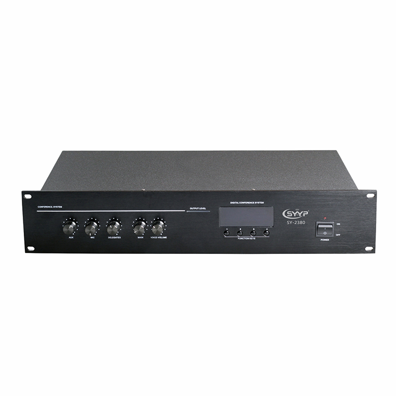 該系統是本公司自主研發的,具有自主知識產權的數字傳輸和控制技術,革命性地將全數字技術全面地引入到會議系統中,把先進的數字技術和音頻技術充分地結合起來,還實現了對會議進程的全面控制和管理,在業界率先提供了完備而高效的現代會議系統全面解決方案。該會議系統不僅具有質量穩定可靠、數據安全準確、操作簡單適用、系統維護簡單方便等優點,還具有良好的可擴展性,能夠和中央控制系統實現完美的無縫連接。系統可實現數字表決系統、視頻跟蹤系統、數字討論系統、數字會議系統等,主要針對中小型的會議工程。 產品特性:(帶★號的是本產品控標點) ◆標準掛載單元數量:系統具有4路MIC線路接口,,單路可連接30個,最多系統可掛載90個會議單元,且最遠線路長度可高達100米 ( 延長線長度會影響總掛載數量,請參考系統掛載表格) ◆可以靈活支持自動討論會議模式、視頻跟蹤會議模式 , ★支持會議簽到及5鍵表決, ★支持軟件控制及支持中央控制系統控制 ★自帶2組三段均衡線路,可對麥克風輸出及話筒揚聲器聲音進行單獨調節 ★具有火警報警接口,可與消防系統聯動,保證與會者安全,(選配) ★配有4進4出標清視頻矩陣,可直接控制最多三個攝像球的視頻切換,并支持3路視頻同步監控輸出, ★多種輸入輸出接口,2組主輸入、2組卡座輸入和2組原音輸出,2組帶反饋音頻主輸出, ★帶一路主席話筒音頻備份平衡輸入接口 ★支持硬件自檢功能,(需電腦軟件配合) ★支持CAT6網線傳輸 ,延長線最大支持50M(使用專用的轉接盒,) ★可以與備份主機相連,實現主機雙備份, ◆內置DSP自適應音頻處理器,可以最大可能的抑制聲回輸 ◆標準安全的供電設計220V交流供電,機內采用大功率開關變壓器,功率充足 ◆除了可滿足本機使用之外,還可以供給討論單元使用,其輸出電壓為24伏直流電源,屬安全電壓范圍,確保與會者的使用安全 產品參數: ■供電:AC100V~240V50/60Hz ■功耗 標準: <200W ■頻率響應 20--25000Hz(+-3dB) ■信噪比 >80dB(A) ■動態范圍 >90dB ■總諧波失真 小于0.1%AT1KHz ■通道串音 >80dB ■顯示 67*27mmLCD顯示屏 ■環境溫、濕度要求 -20~60℃/0-95%(無凝結) ■尺寸(深*寬*高) 321*481*88(mm) ■重量 5.15Kg