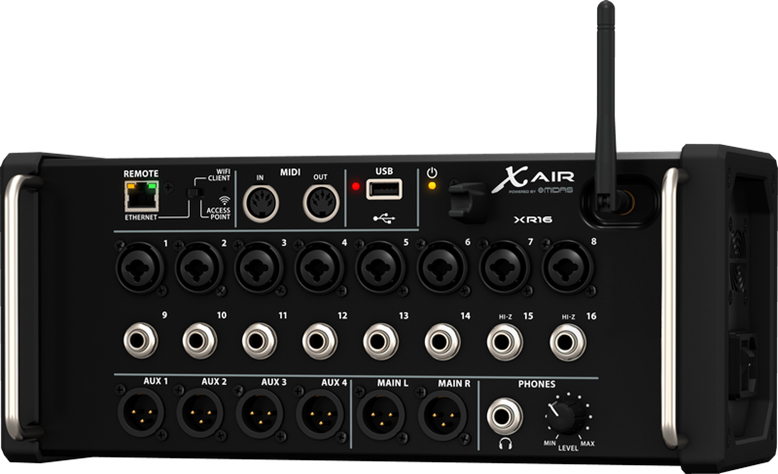 可用IPAD或安卓平板控制,16輸入端數字調臺,適用于錄音室和現場演出使用; 8個MIDAS設計,可編程話放提供超凡音效;40位浮點數字信號處理器,自帶wifi模塊用于直接控制,無需額外的路由; 16X16通道,雙向USB界面接口,可與PC連接實現2軌錄音; 配置4臺與X32數字調音臺一樣的效果器; 通道和母線均衡配有100段實時分析儀(RTA); 可與百靈達個人監控系統P16系列配套使用; 機架拉手和防撞保護設計,便于安裝和舞臺使用; 4輔助和主左右母線插口,全動態處理器和6頻段參數或31段圖形均衡; 4個XLR輔助輸出口和2個XLR。XR16實現自動混音 以往同時使用2個或以上話筒時,反饋噪聲、錄音噪聲和濾波器噪音問題使人備受困擾,而XR16增益共享技術則能使你從此遠離這些煩惱。此技術為系統增益結構持續護航,,即使多人同時使用話筒講話,也能使系統處于平穩狀態。 4個機載X32效果器 配置與X32數字調音臺相同的效果器,虛擬機架式效果器可擁有4個立體聲道(8個單聲道),多效果處理器(包括延時、合唱動態),另外,XR16憑借其主/輔助母線31段均衡能實現高品質立體聲混響,以上各種效果均無須借助任何額外硬件