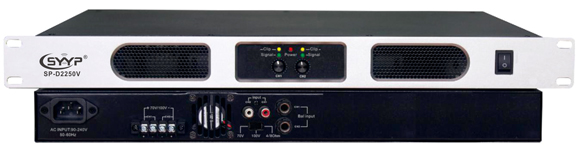 D2250V產品參數: 功放類型:1U數字功放 立體聲定阻輸出:2x250W 8Ω 立體聲定阻輸出:2x380W 4Ω 70V定壓輸出:1x750W 100V定壓輸出:1x750W 輸入靈敏度:0.775V 頻率響應:20Hz-20KHz 阻尼系數:>400 最大功耗:1100W(正炫波輸出模式) 最低功耗:30W(待機模式,在10秒中無信號輸入時,本機處于休眠待機模式) 失真度:<0.05%(1KHz/1W) 效率:>90% 壓縮方式:自動壓縮 輸入方式:平衡輸入:6.3大三芯 非平衡輸入:蓮花插 阻抗:8Ω/4Ω負載自動匹配 電壓:70V/100V自動匹配 喇叭連接座:4pin接線座 散熱方式:前后散熱結構 保護:短路、過流、溫度保護 電源范圍;90-250VAC 50-60Hz 設備尺寸:(高X寬X深)44mmX483mmX305mm 凈重:3.5KG