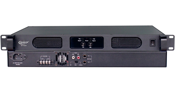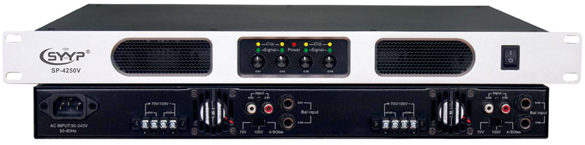 D4250V產品參數: 功放類型:1U數字功放 立體聲定阻輸出:4x250W 8Ω 立體聲定阻輸出:4x380W 4Ω 70V定壓輸出:2x750W 100V定壓輸出:2x750W 輸入靈敏度:0.775V 頻率響應:20Hz-20KHz 最大功耗:1100W(正炫波輸出模式) 最低功耗:30W(待機模式,在10秒中無信號輸入時,本機處于休眠待機模式) 失真度:<0.05%(1KHz/1W) 效率:>90% 壓縮方式:自動壓縮 輸入方式:平衡輸入:6.3大三芯 非平衡輸入:蓮花插 阻抗:8Ω/4Ω負載自動匹配 電壓:70V/100V自動匹配 喇叭連接座:4pin接線座 散熱方式:前后散熱結構 保護:短路、過流、溫度保護 電源范圍;90-250VAC 50-60Hz 設備尺寸:(高X寬X深)44mmX483mmX305mm 凈重:4.5KG