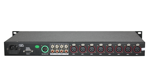 本產(chǎn)品為新一代多功能8路數(shù)字會(huì)議混音器。在傳統(tǒng)的混音器功能上獨(dú)創(chuàng)了會(huì)議系統(tǒng)功能,更具備人性化LCD和PC軟件操作界面,其中PC操作支持免驅(qū)USB連接。適合中小型會(huì)議室,多謀體教學(xué)室,法院庭審。 本產(chǎn)品支持8路獨(dú)立的混音,聲音處理采用專用音頻處理IC,聲音清晰,無雜音,整體信噪比高。每路支持獨(dú)立的幻象電源控制,聲音大小調(diào)節(jié),聲控靈敏度調(diào)節(jié),優(yōu)先級(jí)調(diào)節(jié),發(fā)言時(shí)間調(diào)節(jié),更支持常開和禁止功能,以適應(yīng)某些特定場合。 會(huì)議功能支持發(fā)言人數(shù),限制模式,隊(duì)列順序和優(yōu)先模式設(shè)置,可自由組合。 系統(tǒng)具有反饋降噪功能,可自由打開或關(guān)閉(依機(jī)器型號(hào)而定),打開后拾音距離可達(dá)到50cm;系統(tǒng)支持豐富的中控功能。 輸入電源電壓:220V(+-10%) 功率:<50W 單路話筒幻象電源(輸出):48V(+-1V) 信噪比:>85dB 失真度:<0.5% 通道分離度:>95dB 單路話筒頻響:70Hz---18kHz 單路話筒輸入阻抗:1K歐姆 聲控靈敏度:-47dB---0dB(48級(jí)可調(diào),0為關(guān)閉,衰減>95dB) 單路話筒音量調(diào)節(jié):-47dB---0dB(48級(jí)可調(diào),0為關(guān)閉,衰減>95dB) 音量總輸出:-47dB---0dB(48級(jí)可調(diào),0為關(guān)閉,衰減>95dB) 音量總輸入:-47dB---0dB(48級(jí)可調(diào),0為關(guān)閉,衰減>95dB) 平衡輸出阻抗:1K歐姆 不平衡輸出阻抗:1K歐姆 不平衡輸入阻抗:3.9K歐姆 6.3輸入阻抗:3.9K歐姆 中控接口:支持,RS232C母 USB(TypeB母)控制:支持(免驅(qū)) 電路話筒觸發(fā)電壓:<100mV 單路話筒打開時(shí)間:<350uS 單路話筒延時(shí)時(shí)間:1-999S 尺寸:48.1cm(W)X4.8cm(H)X25.9cm(D) 凈重:3.45Kg